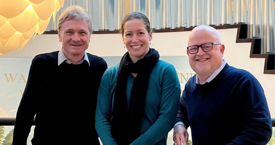Shown here are Matt Lantz and Alinne Oliveira with Reinhold Kugel from the German Hop Industry.