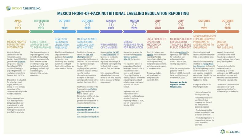 A great example of how BCI Monitor works to track ongoing issues was the adoption of front-of-package (FOP) nutrition labeling regulations in Mexico. First proposed in April 2014, the new regulation could require a costly label redesign, disruption of shipments to Mexico during implementation of the changes, and perhaps even drive product reformulation by food exporters. For 18 months, the BCI Monitor kept clients informed as requirements, exemptions, and enforcement timelines emerged, and alerted them to opportunities to submit comments directly to the Mexican government or through U.S. government responses.